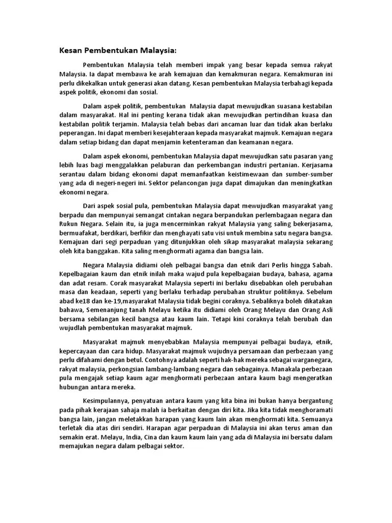Kesan Pembentukan Malaysia Sejarah Tingkatan 5 / Nota Sejarah Tingkatan 5 Nota Sejarah Tingkatan 5